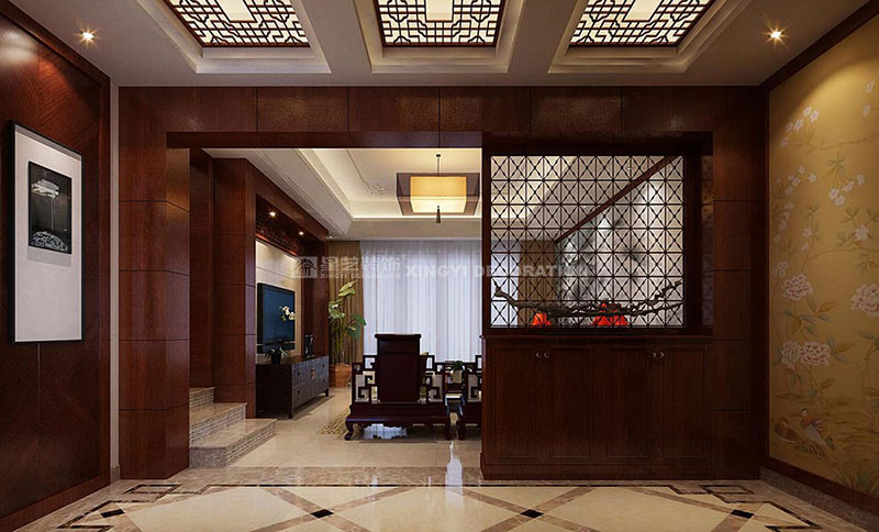 在室內(nèi)布置、線(xiàn)形、色調(diào)以及家具、陳設(shè)的造型等方面,吸取傳統(tǒng)裝飾“形”、“神”的特征,以傳統(tǒng)文化內(nèi)涵為設(shè)計(jì)元素,革除傳統(tǒng)家具的弊端,去掉多余的雕刻,糅合現(xiàn)代西式家居的舒適,根據(jù)不同戶(hù)型的居室,采取不同的布置。中國(guó)傳統(tǒng)居室非常講究空間的層次感。這種傳統(tǒng)的審美觀(guān)念在中式風(fēng)格中,又得到了全新的闡釋?zhuān)阂罁?jù)住宅使用人數(shù)的不同,做出分隔的功能性空間,采用“啞口”或簡(jiǎn)約化的“博古架”來(lái)區(qū)分;在需要隔絕視線(xiàn)的地方,則使用中式的屏風(fēng)或窗欞。通過(guò)這種新的分隔方式,單元式住宅就能展現(xiàn)出中式家居的層次之美