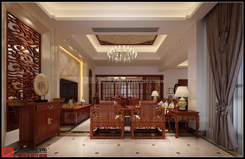 半島融園220平現(xiàn)代中式風(fēng)格裝修案例