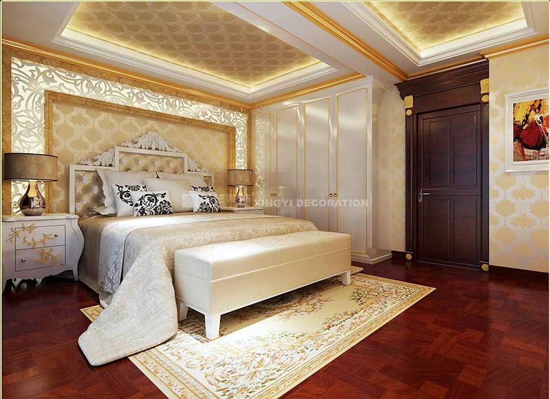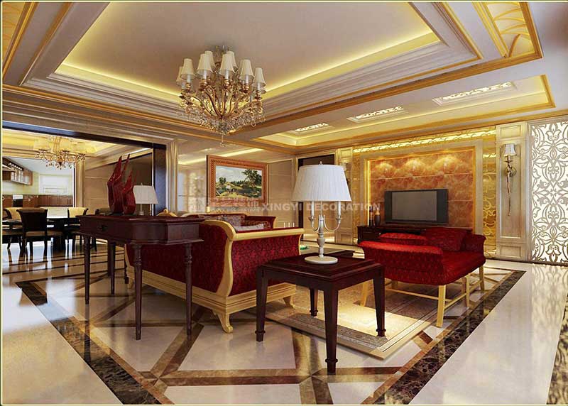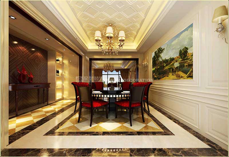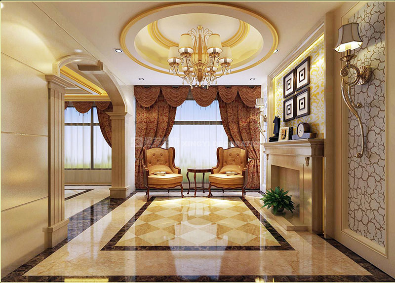 歐式古典風(fēng)格的室內(nèi)設(shè)計(jì),每每都能恰如其分地營造出歐式高貴的典雅氛圍。對(duì)稱的設(shè)計(jì)技巧,呈現(xiàn)精致華麗又不失溫馨。進(jìn)出口設(shè)計(jì)為玄關(guān),藉由公共與私密空間的連貫,消彌了狹長單調(diào)的局促感,為引領(lǐng)視覺焦點(diǎn)轉(zhuǎn)至寬敞舒適的客廳提供了最佳的接口。客廳的天花、燈飾、窗簾、電視柜及家具的擺設(shè),乃至于餐廳柜的造型、書房與主臥區(qū)的規(guī)劃,皆依循對(duì)稱的設(shè)計(jì)語匯延伸發(fā)展,成功地賦予空間視覺的對(duì)稱美感,處處充滿寬敞舒適且優(yōu)雅的居住氣息。