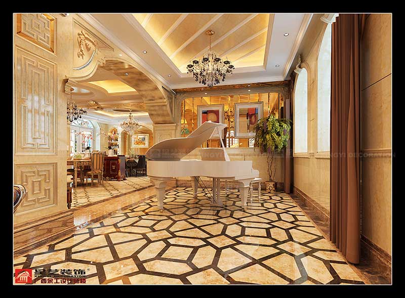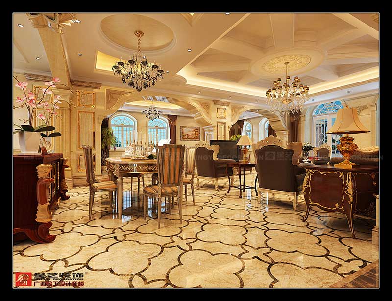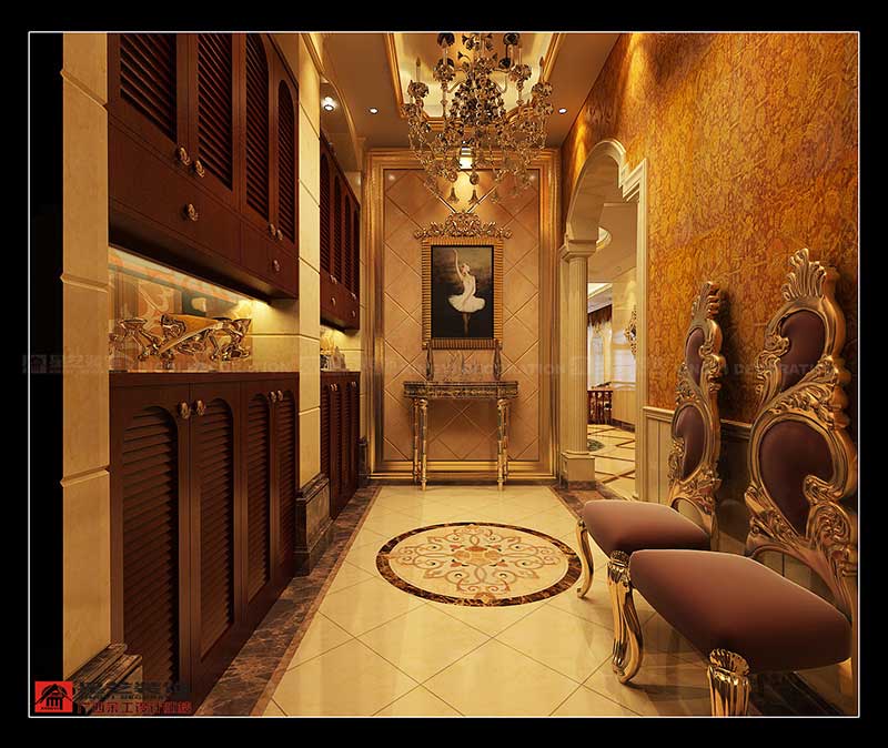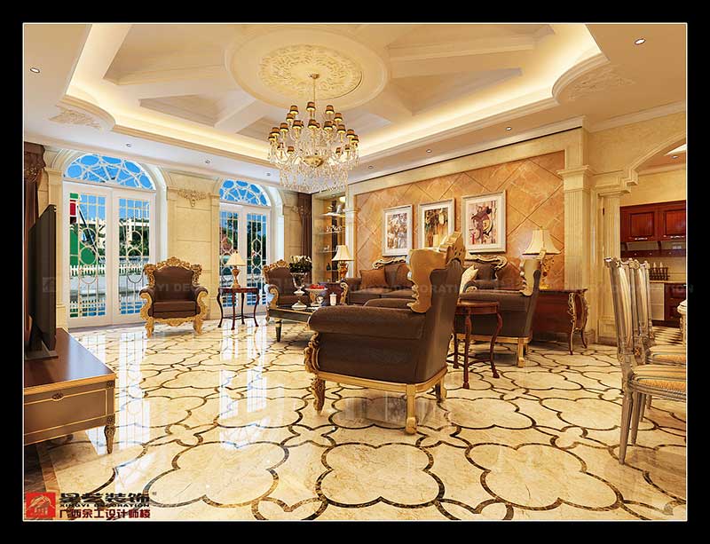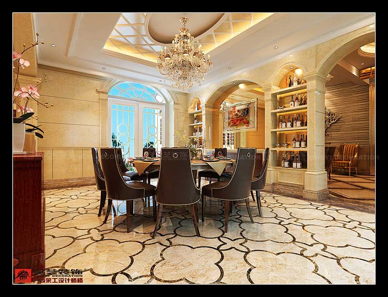 該案主要在創(chuàng)造一個現(xiàn)代奢華歐式主義的家居氛圍,從而來體現(xiàn)這種住宅形式的尊貴性和獨一無二性.在創(chuàng)意上,引入的是傳統(tǒng)的理念,但融入的卻是時尚與未來,這種設(shè)計理念立足于歐式浪漫的色調(diào),但又大膽利用了材質(zhì),燈光等元素的融會貫通,從而以古喻今,復(fù)古式的高貴華麗與最新時尚巧妙結(jié)合,強調(diào)了空間里的意境創(chuàng)造.在尊重原有建筑結(jié)構(gòu)功能的基礎(chǔ)上,對空間構(gòu)架結(jié)合創(chuàng)意元素進行了深入理解,從而做到:去粗取精,去偽存真,強調(diào)空間與空間之間的遞進關(guān)系,滿足了一個富貴之家的全面功能需求.