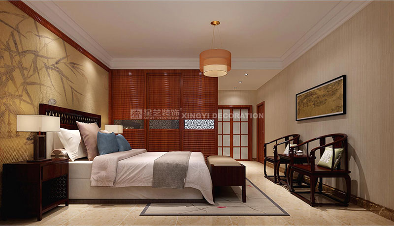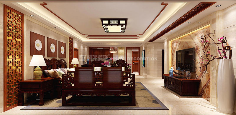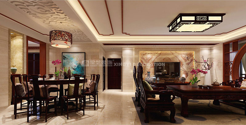 維也納森林170平裝修案例設(shè)計說明:本案例--摒棄古典中式復(fù)雜的工藝和深沉的色調(diào)。保留中式的韻味,創(chuàng)造溫馨的空間。在色彩上,運用深色木等古典常用色來渲染空間氛圍,營造出富麗堂皇的效果。氣質(zhì)沉穩(wěn)高貴,細節(jié)雕刻精美,洋溢著古典的穩(wěn)重華麗。在配飾上,以華麗、明亮的色彩,配以精美的造型達到雍容華貴的裝飾效果。