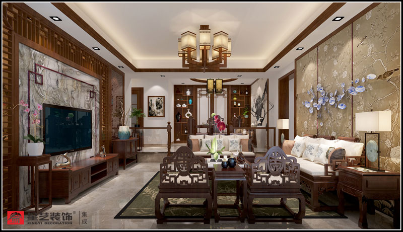 英倫十八139平設(shè)計案例賞析:本案業(yè)主為成功人士,對清明文化有著濃厚興趣,繼清明時期家居理念的精華,將其中的經(jīng)典元素提煉并加以豐富,同時給傳統(tǒng)文化注入了新的氣息。在中國文化風(fēng)靡全球的現(xiàn)今時代,中式元素與現(xiàn)代材質(zhì)的巧妙兼柔,清明家具,窗欞,布藝床品相互輝映,再現(xiàn)了移步變景的精妙小品。