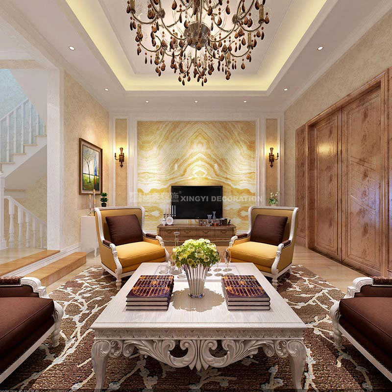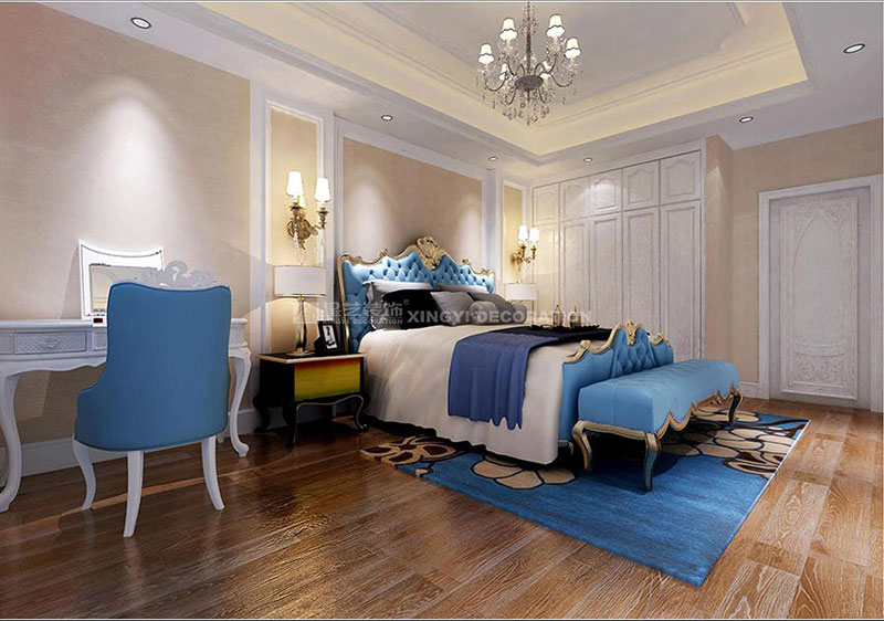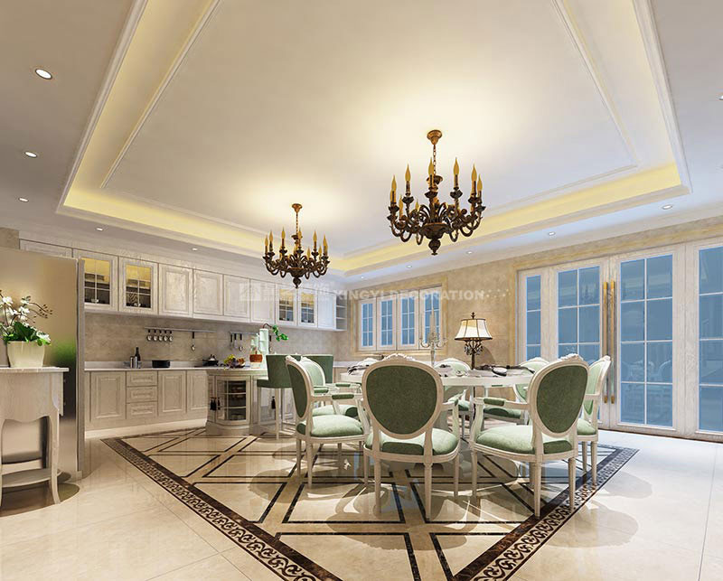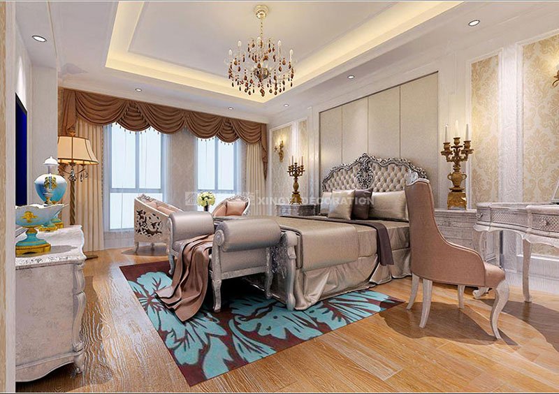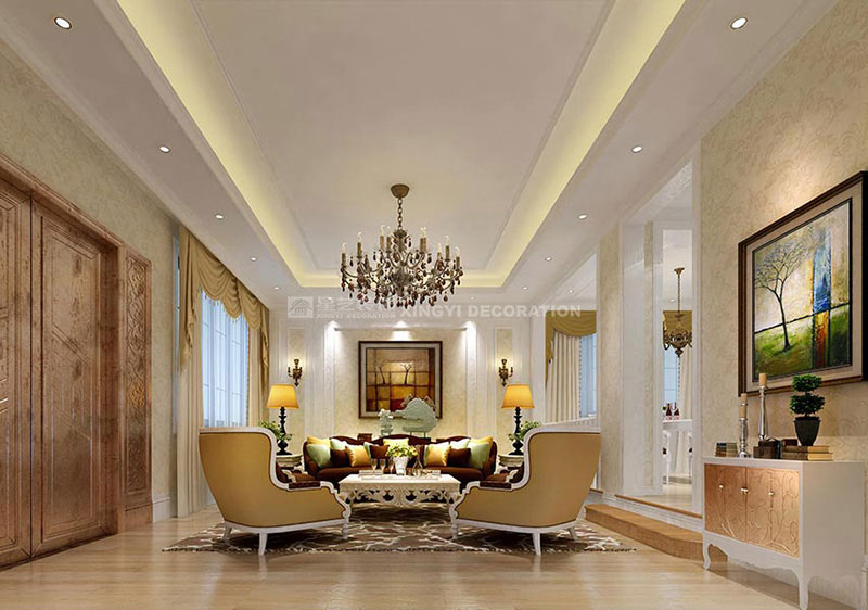 同時,歐式裝飾風格最適用于本套大面積房子,若空間太小,不但無法展現(xiàn)其風格勢氣,反而對生活在其間的人造成一種壓迫感。歐式風格很講究造型門的造型設計,包括房間的門和各種柜門,既要突出凹凸感,又要有優(yōu)美的弧線,兩種造型相映感趣,風情萬種。當然,還要具有一定的美學素養(yǎng),才能善用歐式風格,否則只會弄巧成拙。墻面用優(yōu)質(zhì)墻紙,地面材料以石材和地板為主。歐式客廳用家具和軟裝飾來營造整體效果以襯托豪華效果。布藝沙發(fā)組合有著絲絨的質(zhì)感以及流暢的木質(zhì)曲線,將傳統(tǒng)歐式家居的奢華與現(xiàn)代家居的實用性完美地結(jié)合。壁燈自然不可或缺,它被安置在空間的交匯處,又與一大幅色彩鮮艷的油畫相呼應,給敞開式的客廳提供了一個新的亮點。大面積的玻璃窗帶來了良好的采光,落地的窗簾很是氣派。在設計上追求空間變化的連續(xù)性和形體變化的層次感,室內(nèi)多采用帶有圖案的壁紙、地毯、窗簾(簡約歐式風格窗簾的代表花型是大馬士革)、床罩、帳幔及古典裝飾畫,體現(xiàn)華麗的風格。