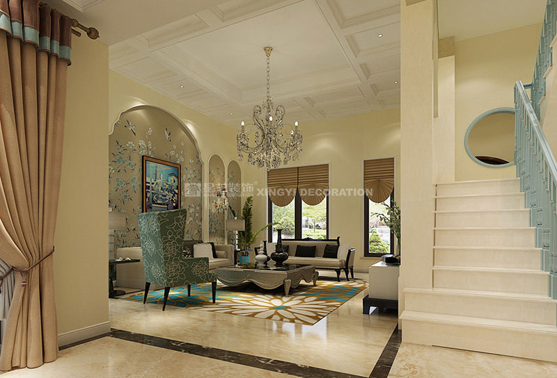 本案是具有現(xiàn)代色彩時尚空間,通過設(shè)計來表達對生活的關(guān)愛,緩解人們的精神壓力,帶來視覺的享受,制造內(nèi)心的溫暖。在同類別墅產(chǎn)品中,我們設(shè)計時希望能帶給客戶不一樣的視覺感受,一陣清新自然的生活趣味彌漫在空間的每一個細節(jié)中。不喧鬧,不夸張,以親切和充滿活力的面貌打動人心。想去度假嗎?顏色的組合,可以讓每天的心情都變成絢麗。