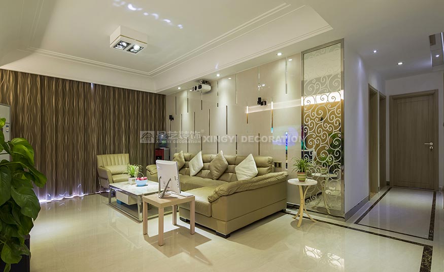 設(shè)計說明:本案坐落于南寧市鳳嶺南。有著環(huán)境優(yōu)雅的居住環(huán)境,業(yè)主是一對年輕的夫婦,而且鐘愛干凈輕巧 寧靜整潔的居室,在仔細溝通后業(yè)主選擇了現(xiàn)代簡約的裝修分格。整套家具不僅設(shè)計手法極為簡潔,用材上也盡量簡潔,并且注重細節(jié)搭配,使家居空間渾然一體,讓人覺得自然、溫暖 、 柔和。而且燈光設(shè)計上取消了大燈,整套燈光全部用了LED燈光。