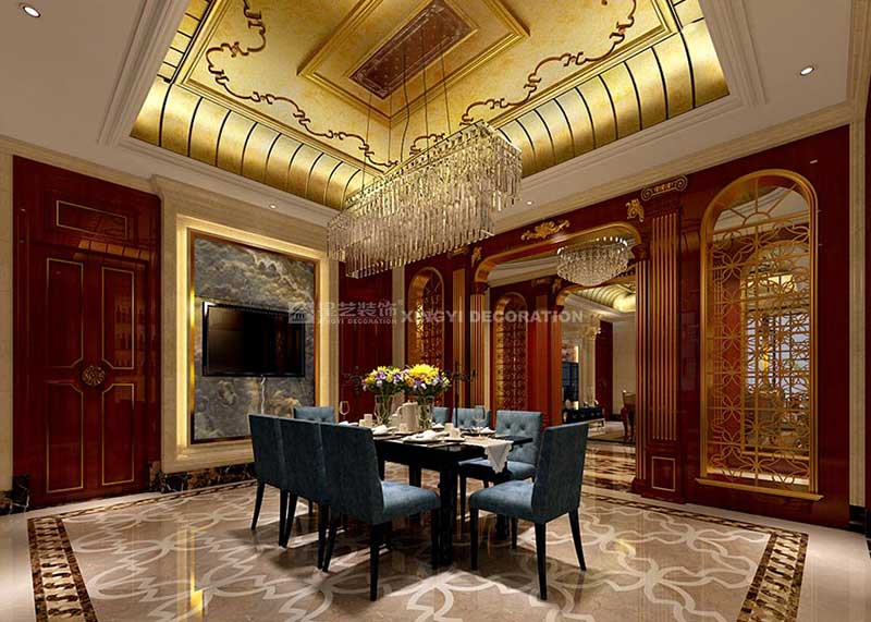 榮和公園尊府340平歐式風(fēng)格裝修案例設(shè)計(jì)說明: