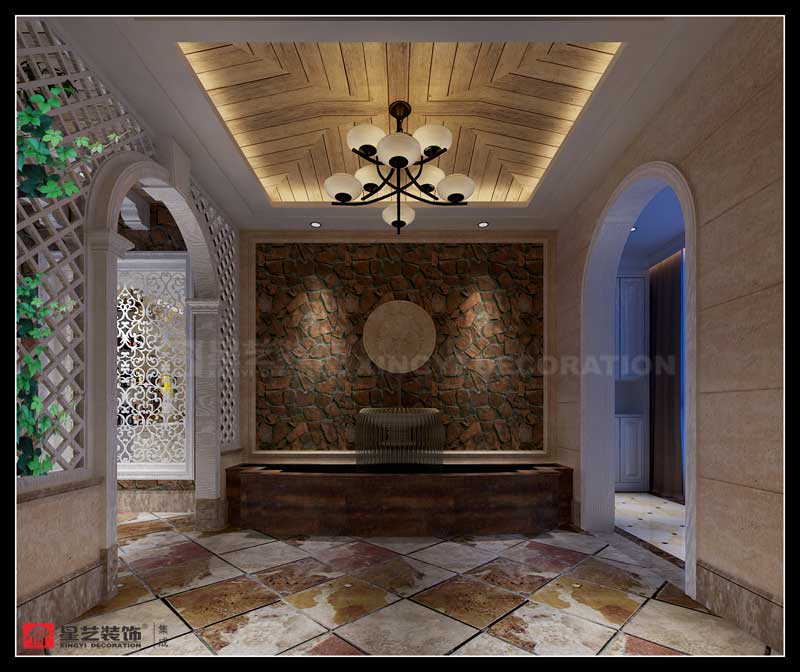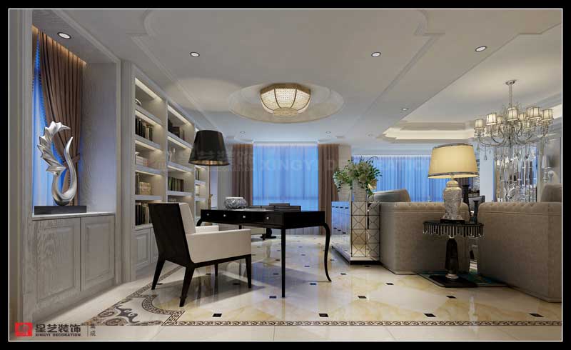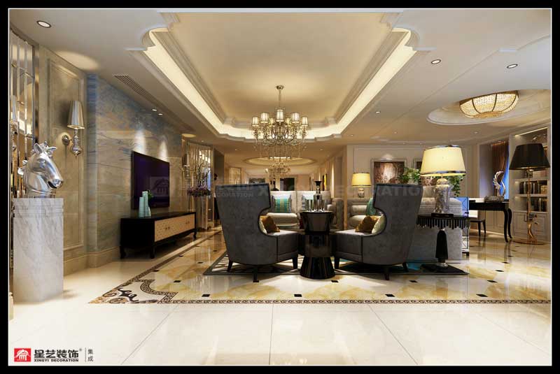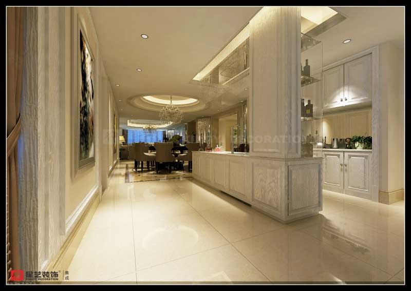 本案試圖尋求一種建筑與室內(nèi)融合并處的思想理念。接受了西方文化的審美表象,和傳統(tǒng)深處不可磨滅的意識相交雜,也是部分業(yè)主心里真實(shí)的反映??臻g的立面處理,強(qiáng)調(diào)的對稱平衡,穿透和最大限度的引入室外的自然園林,入戶門廳的意韻設(shè)計(jì),都前后連貫。寬敞的室內(nèi)為我們展示的是西方文化的景象,各種簡意的雕塑和掛畫,既展示出了主人的收藏和品味,又在室內(nèi)陳設(shè)中形成多重構(gòu)圖,讓人從每一個(gè)角度望去都賞心悅目。每一個(gè)空間,設(shè)計(jì)師都把西方文化的格調(diào)攪拌得均勻入味,客廳背景更是別有一番韻味,海納百川與窗外的南湖景相呼應(yīng),和簡潔的沙發(fā)床藝一同譜寫出悠然雅致的歐式風(fēng)情。