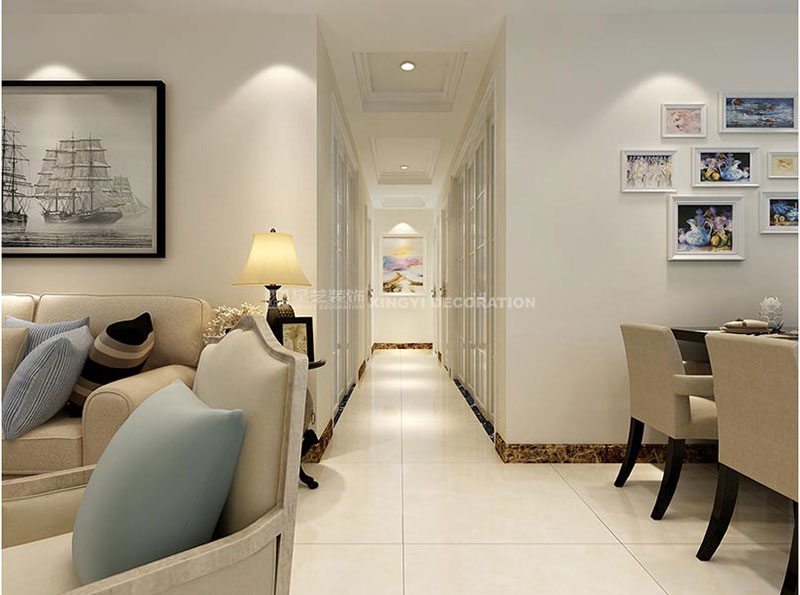 在該案例主要以簡約歐式為主,混搭了地中海特有的造型元素,以白米白色調(diào)為主,地中海元素造型的電視背景墻,和弧形的吊頂,糅合的弧型線條,搭配上簡約歐式的家具,明亮的燈光,使整個空間寬闊明亮,溫馨舒適。
