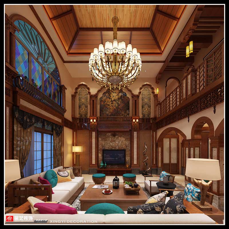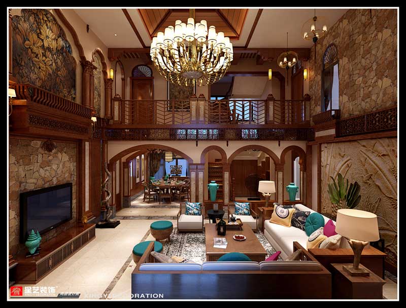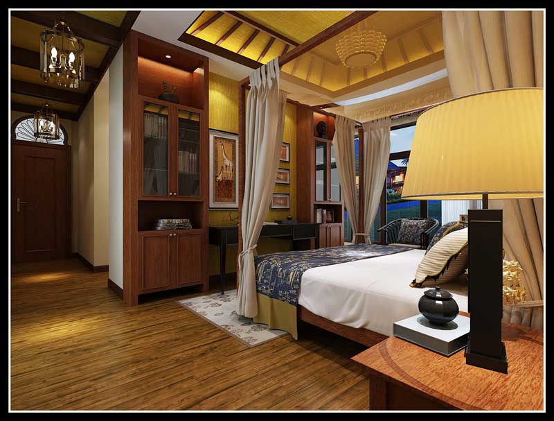 本案在東南亞風(fēng)格中更偏向于家居生活化,東南亞風(fēng)格講究布局上的軸線對(duì)稱、細(xì)節(jié)上多運(yùn)用原木廊柱、雕花線條、金色米黃、草編等,在整個(gè)建筑空間上喜歡氣勢(shì)恢宏、豪華舒適的居住空間,給人以一種高貴典雅的感覺。