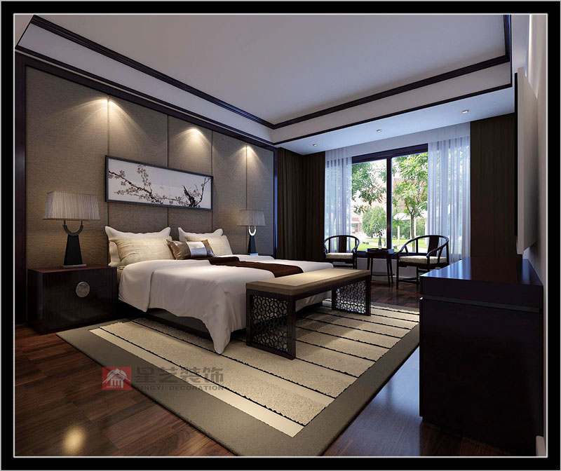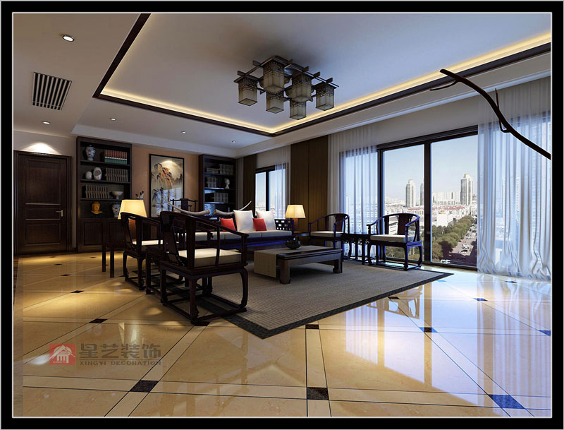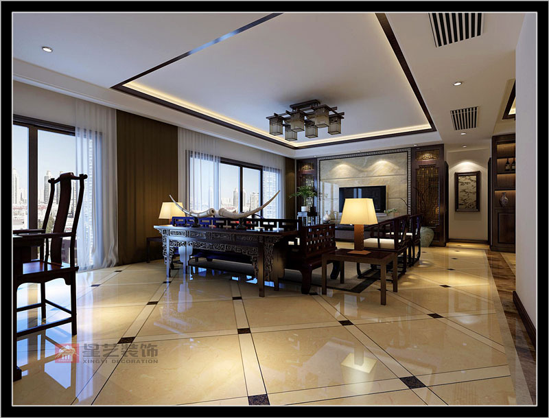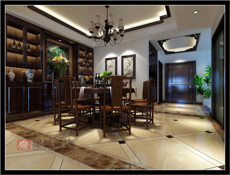 本戶型采用新中式的設計風格手法來進行整體的調(diào)性設計,本戶型整體面積較大,考慮運用進新中式風格一方面讓空間有足夠的氣場體現(xiàn)戶型,一方面用人們熟悉的具有代表性的中式家具來打動客戶,整體以古典古香的基調(diào)、家具與裝飾的搭配為主,利用古老的家具——紅木的家具、太師椅、有雕飾的裝飾品以及燈光等等增添新中式原有的味道!