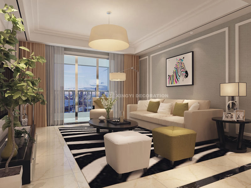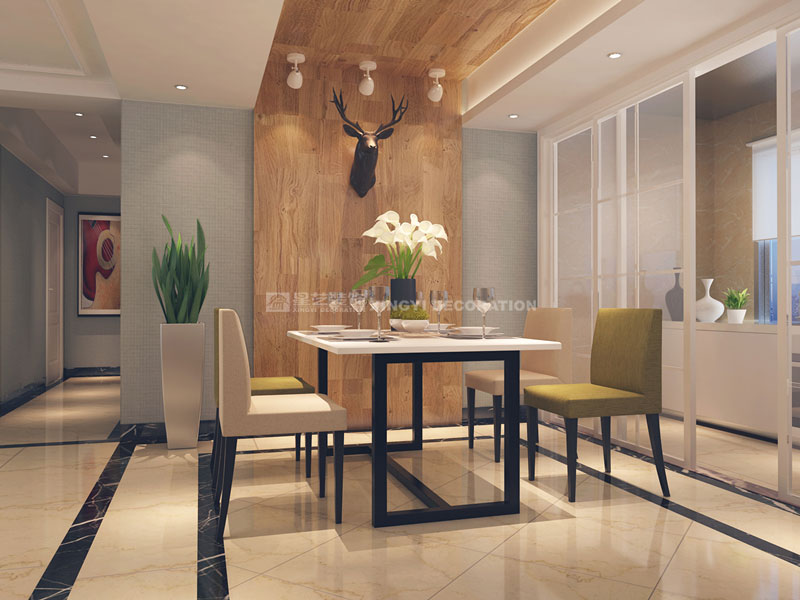 本案位于五像新區(qū)體育中心對(duì)面,業(yè)主是一對(duì)剛生寶寶的年輕夫妻,對(duì)于新的事物接收能力比較強(qiáng)。本案入門原結(jié)構(gòu)比較狹窄。所有在考慮方案時(shí),設(shè)計(jì)師把原來的生活陽臺(tái)改造成獨(dú)立的廚房,入門正對(duì)的位置做為一個(gè)餐廳兼入戶背景。這個(gè)入戶背景運(yùn)用的是從底到頂?shù)哪镜匕迳蠅υ煨?,把整體的視覺拉高,就可以解決入門矮小的問題。墻面用灰色的墻布把整體空間推入一個(gè)高雅的狀態(tài)。 電視背景墻用一整面簡(jiǎn)潔高雅的雅士白大理石作為主體把北歐風(fēng)表現(xiàn)得淋漓盡致