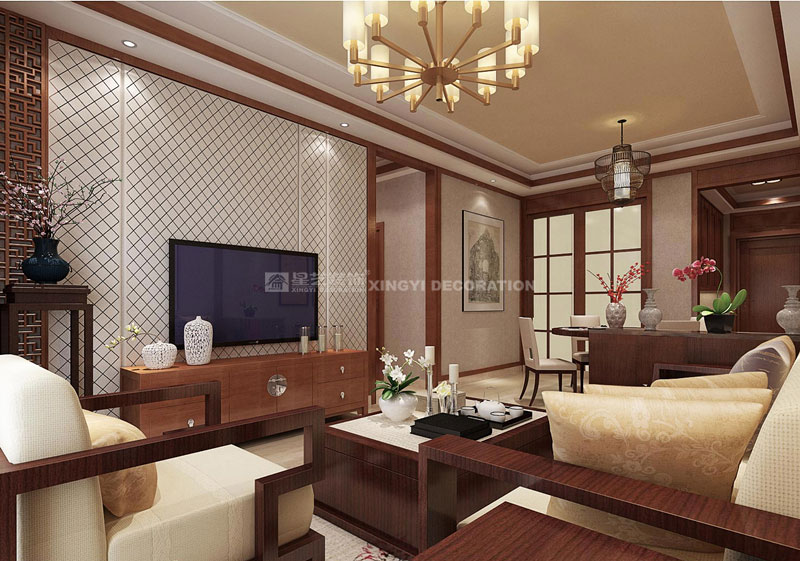 華發(fā)國賓一號110平現(xiàn)代中式裝修案例