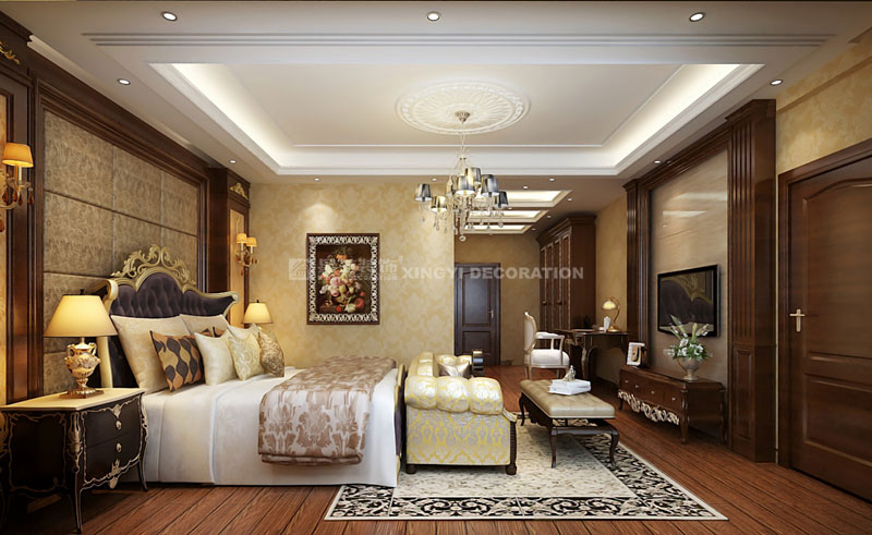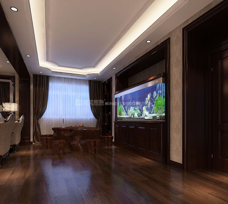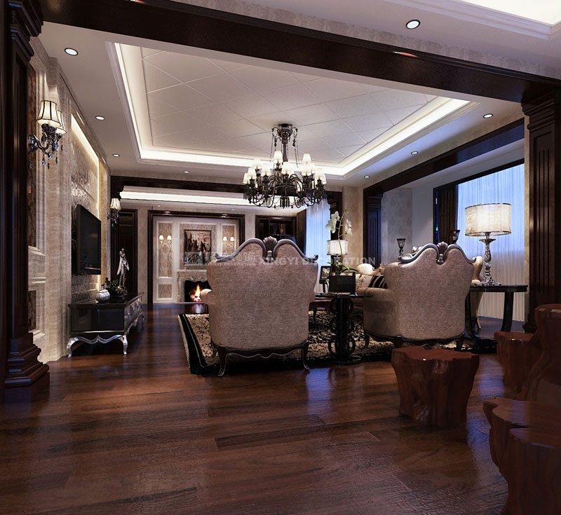 業(yè)主黃先生喜歡純正,低調(diào)奢華的美式風(fēng)格,希望多運用暗棕色的家具和配飾,來凸顯出主人氣質(zhì)的沉穩(wěn)。因黃先生經(jīng)常有生意上的朋友到家里做客,所以希望客廳能有會客室的功能。